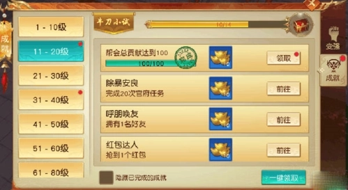 成就任务数量不少,而且差不多每个成就完成后都能拿到元宝奖励,所以建议尽可能把这些任务做完来获取元宝。
