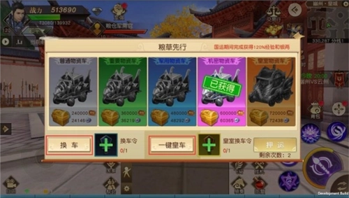 玩家在领取物资车前,可使用道具“换车令”刷新物资车的档次。