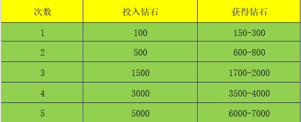 次数总共是五次,每次所需的钻石数量请参照下图,要准备好相应数量的钻石。