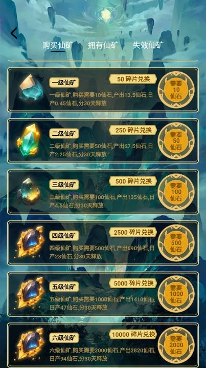 完成实名注册后观看广告,就能领取新人专属的仙矿奖励,连续观看三天可累计获得三个仙矿。这三个仙矿每日将为你产出0.45仙石,仙石的用途十分广泛:它不仅能助力你的修仙渡劫之路,还可以解锁10代奖励机制与分红权益。此外,多余的仙石还能在游戏内的交易市场中进行售卖变现!