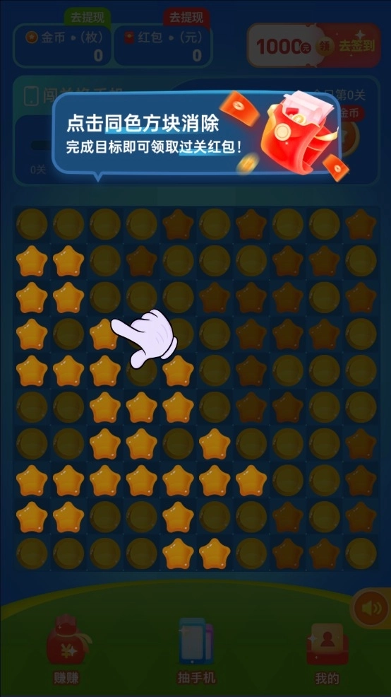 2、点击颜色相同的方块进行消除,达成目标即可获得通关红包。