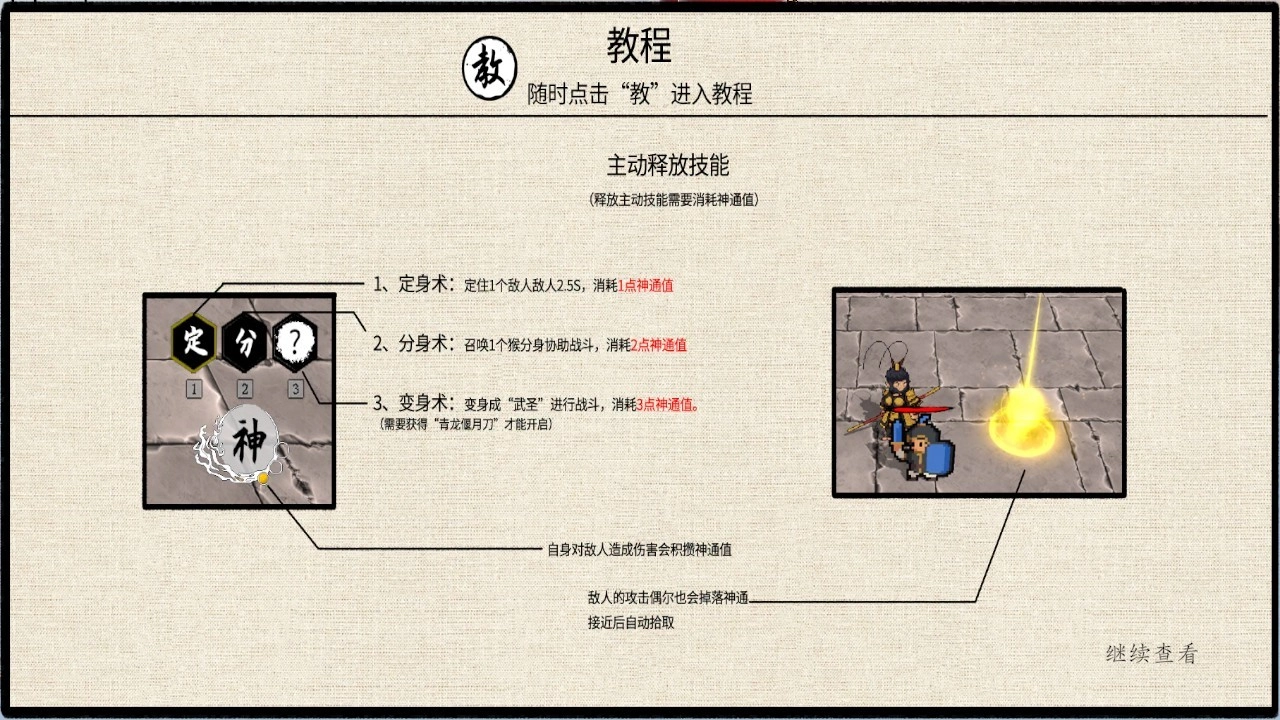 2、分身术:召唤1个猴分身来帮忙战斗,需要消耗2点神通值。