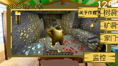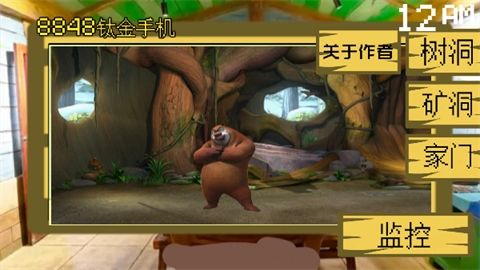 2、监控画面分别显示树洞、矿洞和家门,目前能看到熊大在树洞。