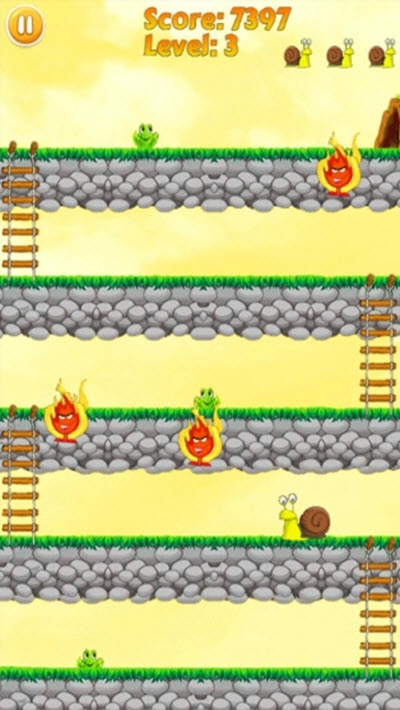 在游戏里,玩家要协助蜗牛抵达终点,通过虚拟摇杆来进行操控,过程中会碰到不少火球。