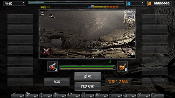 击败小怪后,可以点击搜索来获得随机掉落物品。