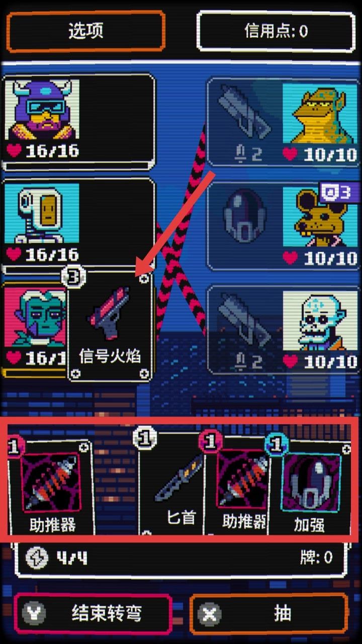 4. 强化你的名片。调整它们的成本、耐久度或外观色彩。依据你的策略来定制专属牌组。