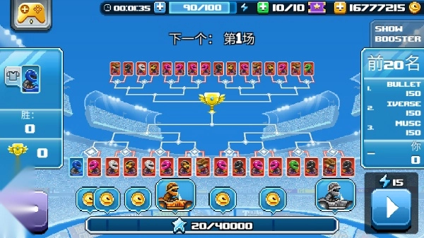 1、超级足球模式下,为玩家提供了竞技、二人、练习等三个游戏模式