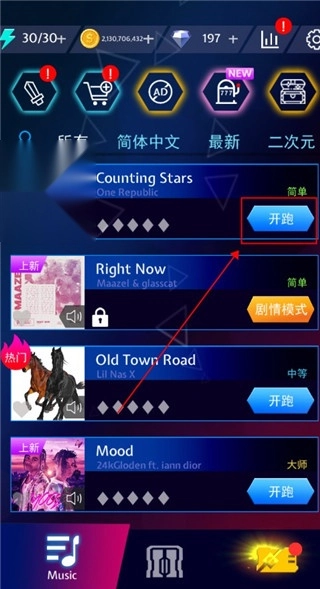 1、选择一首歌曲点击开跑即可开始体验