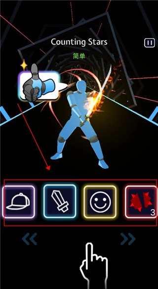 《节奏大宝剑》的界面设计十分精致,在关卡推进过程中,背景会跟随音乐的节奏改变色彩,为玩家带来出色的视觉享受。每次击打音符时,游戏会提供震动反馈,操作手感流畅舒适,尤其适合用来缓解压力。不同关卡搭配着各异的音乐,越往后关卡的难度越高,音乐的节奏感也愈发强烈。