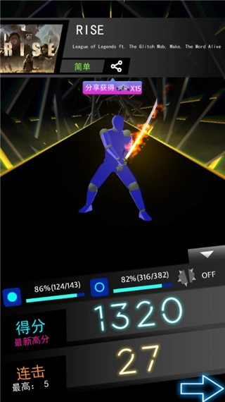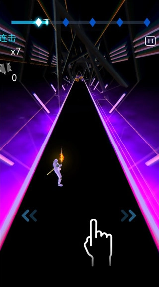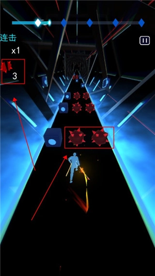 4、开始跑步后,我们就能直接挥砍这类方块了,只要连续挥砍且不遗漏,就能提升连击数。