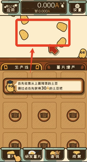 1、玩家开始游戏后需要先收集掉落的薯片。