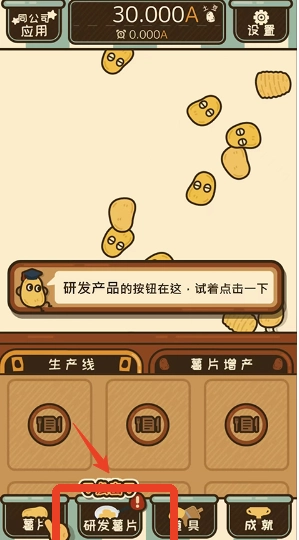 3、除了制作薯片,还需要研发新薯片,点击“研发”按钮就能研发出不同口味的新薯片。