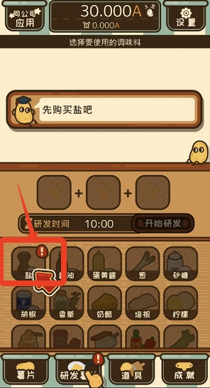 4、进入研发的界面后需要先购买“盐”。