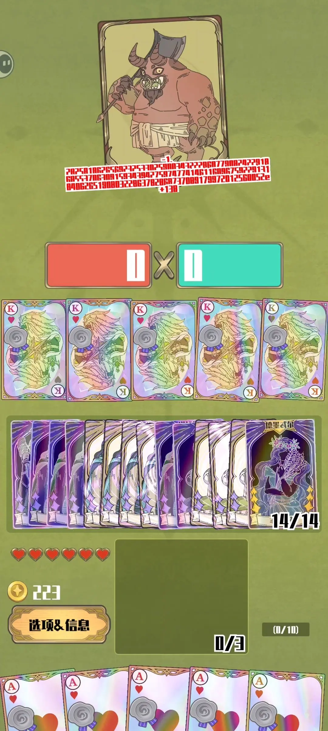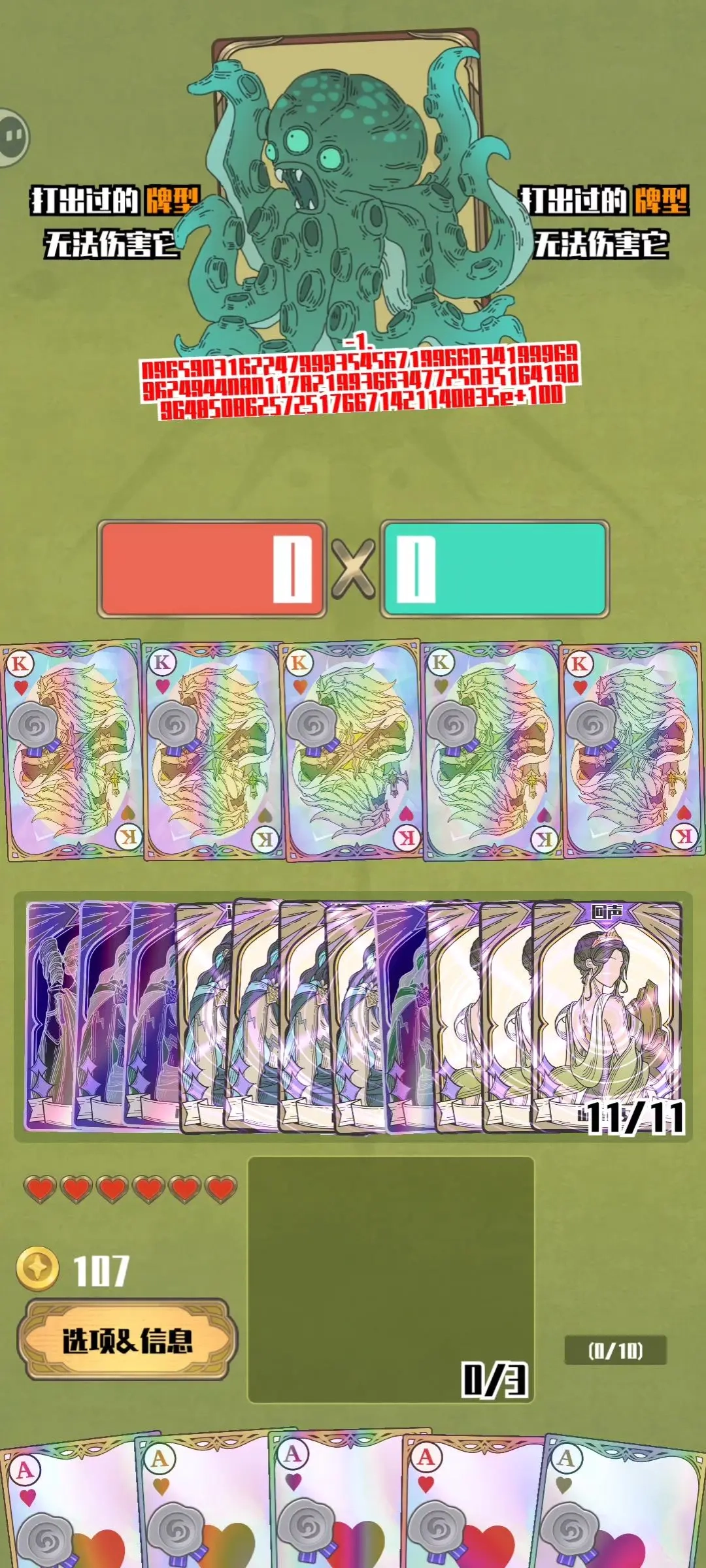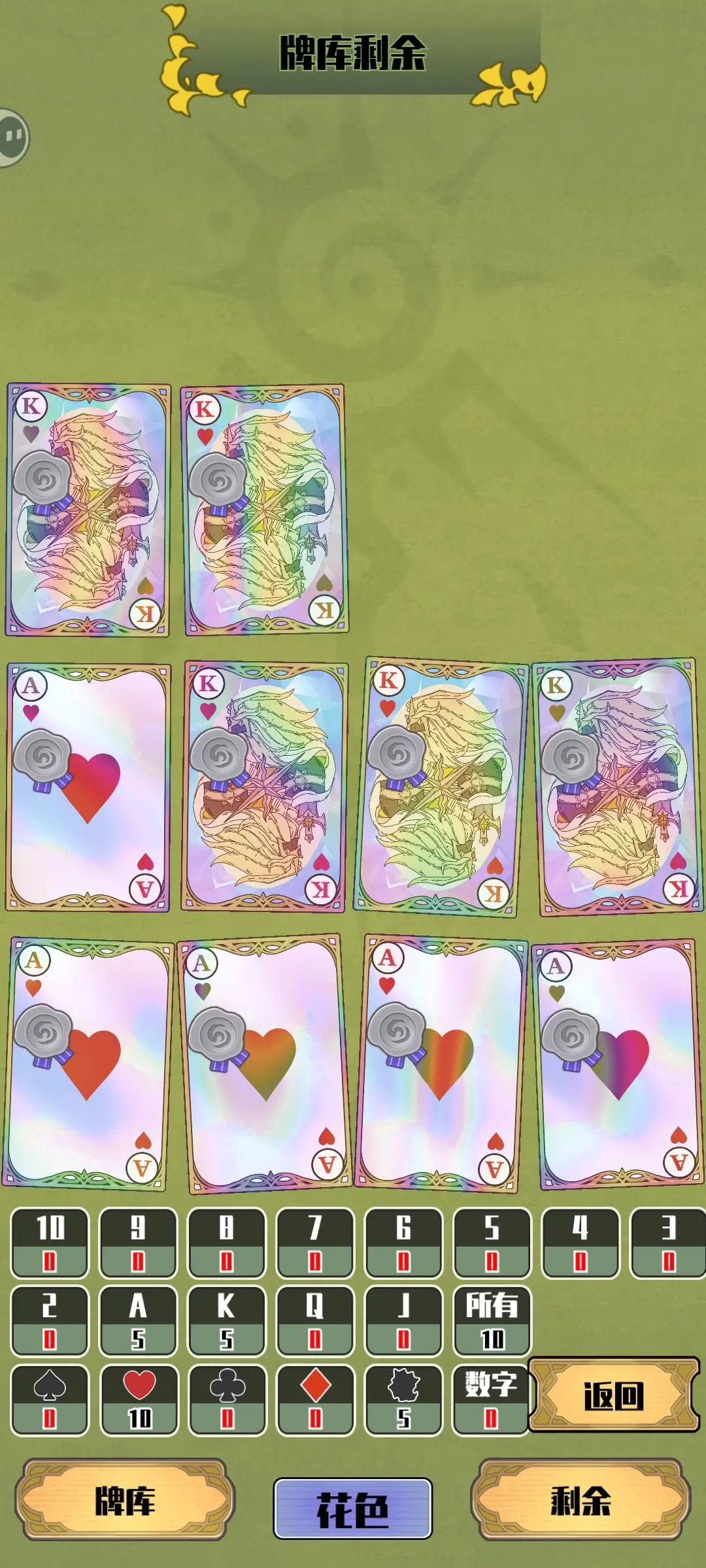 手牌【10张】:5张红桃宝石回响辐射卡(优先选择A卡或人头卡)+5张珍珠回响辐射卡
