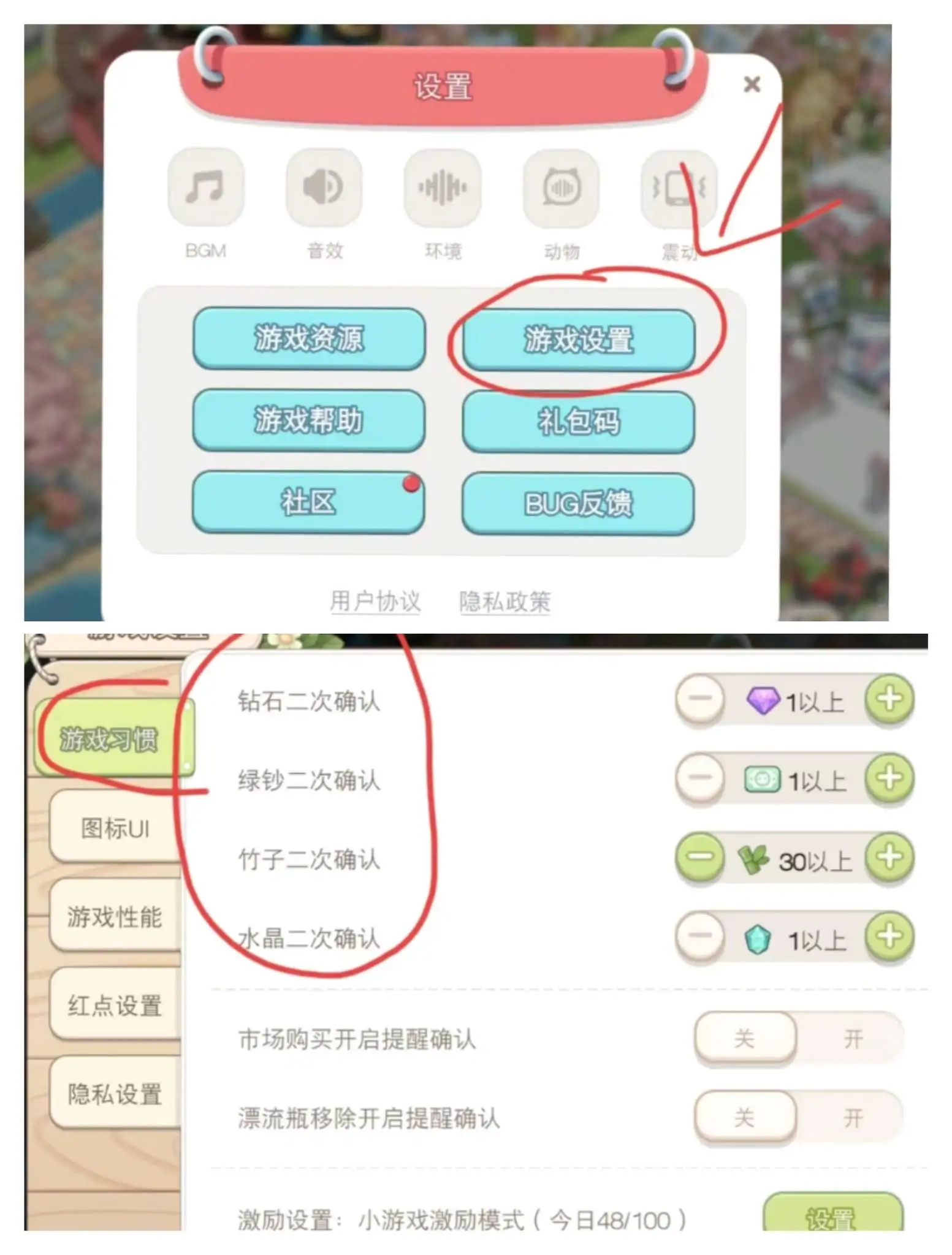 ④设置竹子/钻石/绿钞二次确定【必做!】