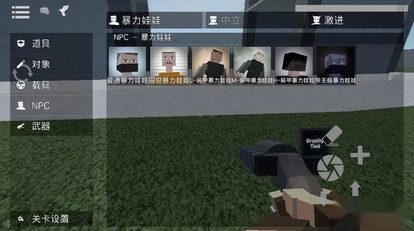 4、接着关闭背包,点击菜单取出工具枪,再点击+号图标就能生成npc了。