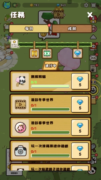 迷你游戏:可以和小熊猫一同参与迷你小游戏,完成之后能得到许多钻石。
