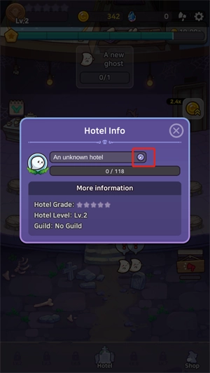 3、在此你可以更换自己喜欢的酒店名字啦。