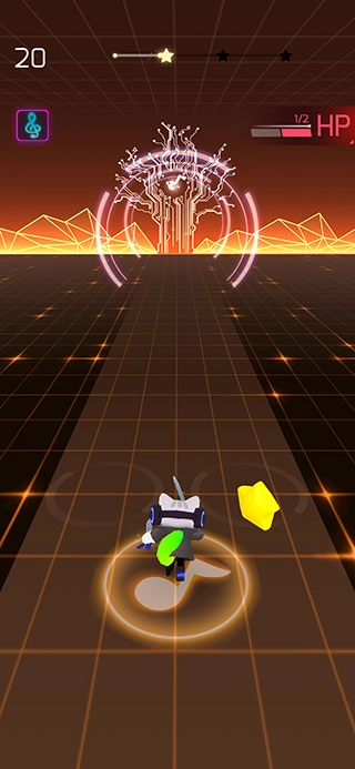 3、开始之后,大家可以跟着音乐的节拍,持续击碎前方的音乐方块。