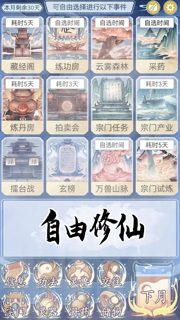 这是一款自由度拉满的修仙模拟游戏,玩家能够随心所欲地探索游戏里的各种内容。