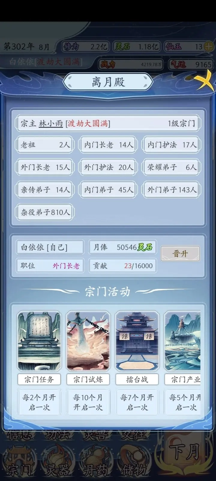 11.宗门任务:没什么用,贡献点仅能提升地位,当下没有别的用途。