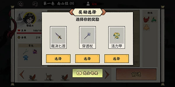 1、宝箱关卡获取随机奖励,用于后续战斗。