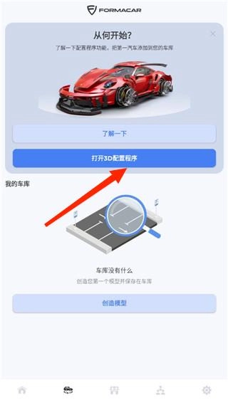 2、在改装配置页面找到“3D配置程序”并点击进入,车辆会以立体模型形式呈现,你可以自由旋转视角,从前后左右各个方向查看整辆车,便于观察车身比例与整体造型。