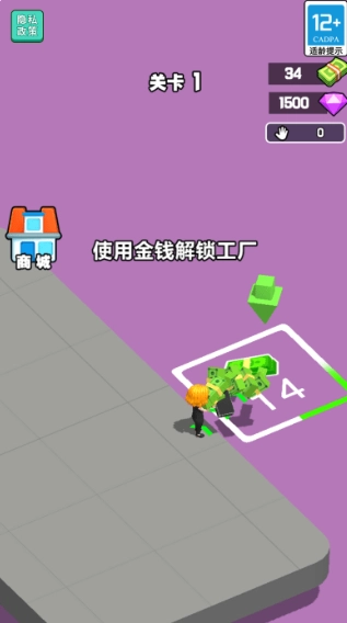 2、游戏操作十分简单,只需解锁各类工具,合理规划并摆放好每台机器的位置即可。