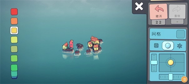 城镇叠叠乐是一个充满活力的实验性项目。它与其说是一款游戏,倒不如说更接近一个玩具。你可以从调色板里挑选颜色,把彩色的房屋方块摆放在不规则的网格上,接着就能看到Townscaper的底层算法会依据方块的形态,自动将它们转化为模样可爱的小房子、拱门、楼梯、桥梁以及绿意盎然的后院。