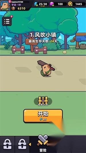 1、进入游戏后在界面点击开始进行冒险。