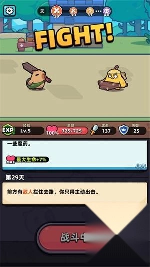 当遭遇怪物时便会触发战斗,战胜怪物后即可继续前行。