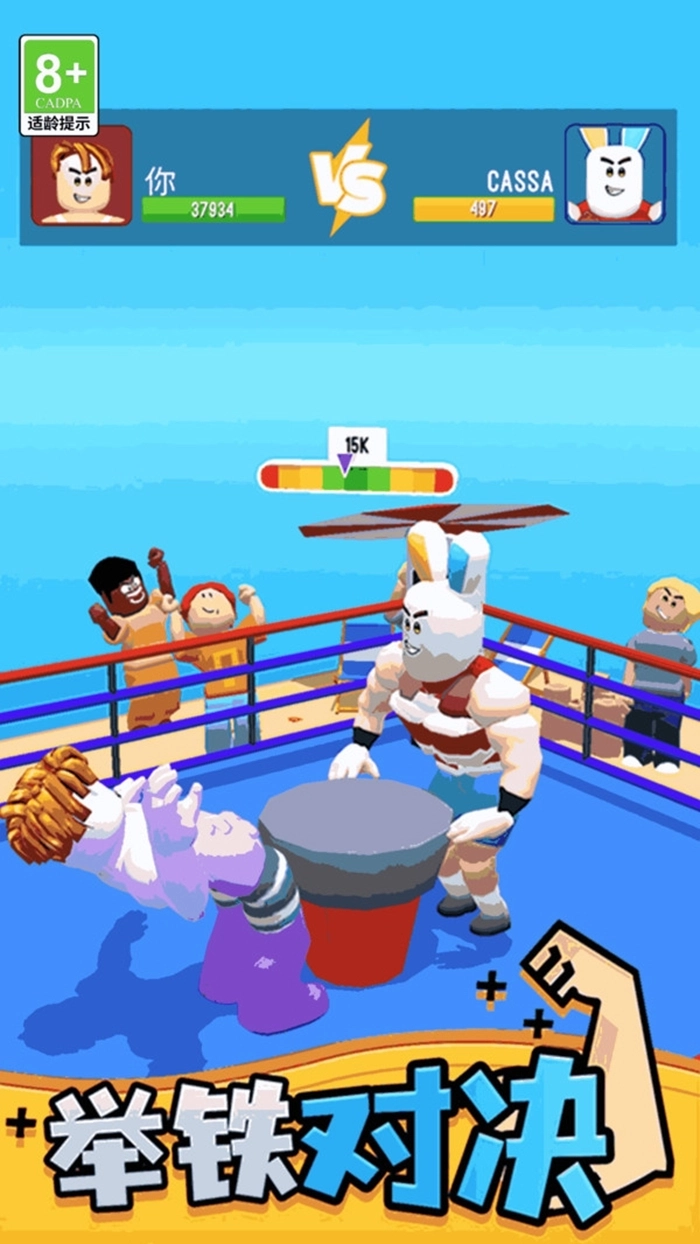 3、当属性达到要求后解锁力量擂台,角色的肌肉线条、飞溅的汗水以及器材的形变效果都会实时展现,打造出沉浸式的对决体验。
