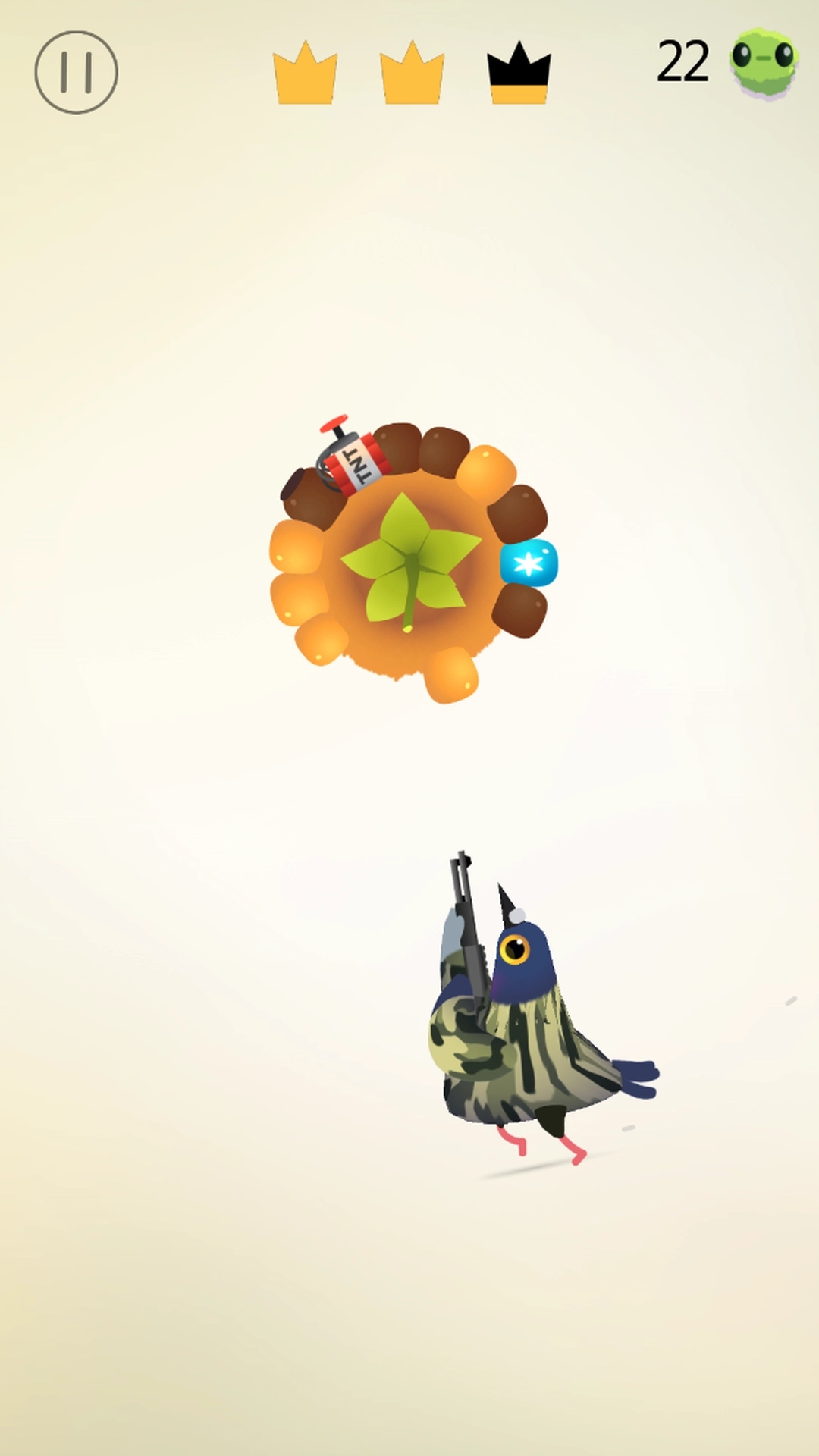 2、玩家要通过点击屏幕操控鸽子啄食玉米,一旦啄到坏玉米就会失败,经典的见缝插针式魔性玩法在此基础上进行了升级。