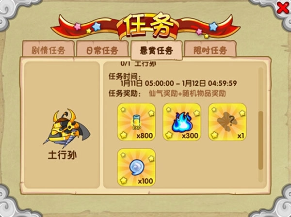 5、悬赏任务:参与并完成悬赏任务可获取相应的仙气奖励,任务的星级评定越高,所能得到的仙气数量也就越多。