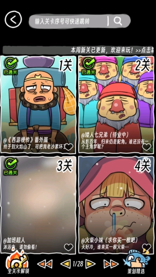 和短视频的互动方式类似,玩家在完成关卡后,能够浏览每一关里那些有趣的“评论”内容,还可以把这一关卡分享给好友,也能将其标记为“喜欢”,这样后续想重复游玩时就更方便啦!
