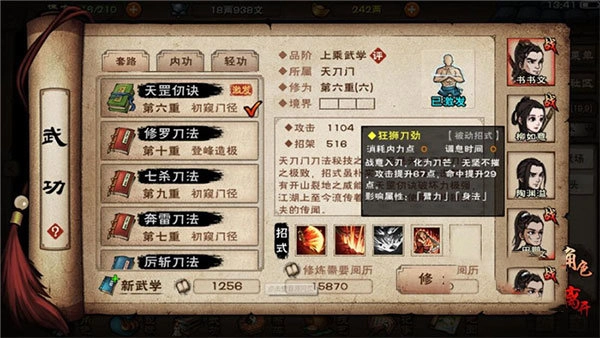 3、新时代的侠客养成,按照自己的方式去练功升级;
