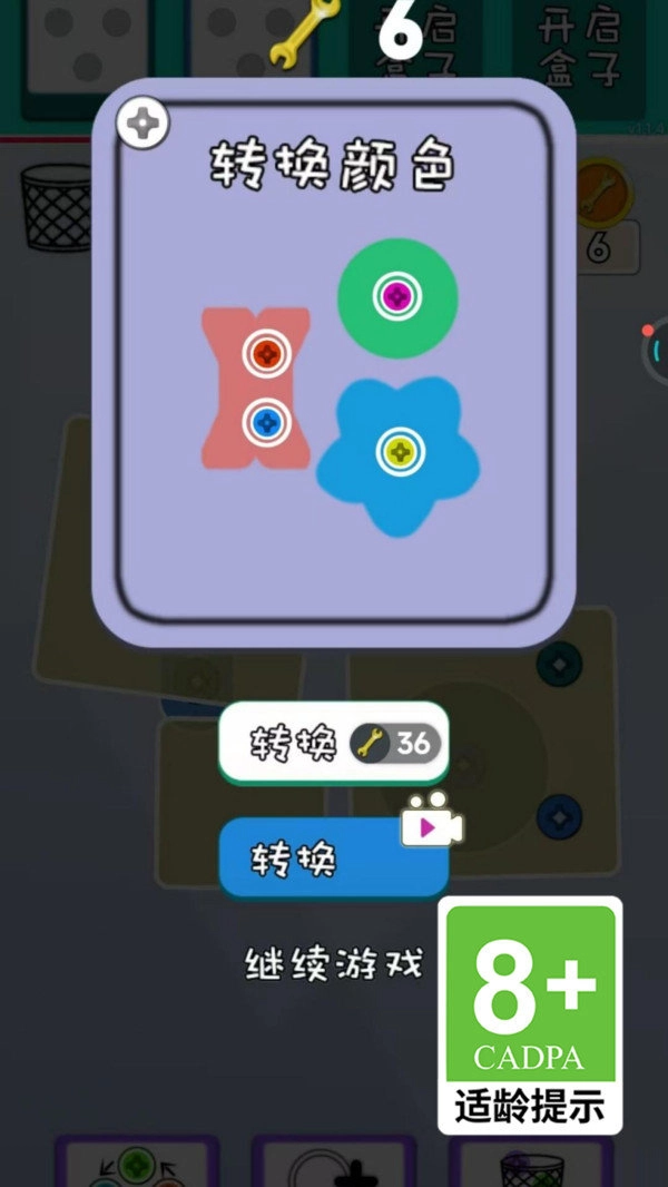 3.按照正确的顺序解开螺丝谜题,使零件持续掉落。