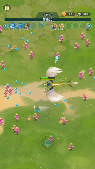 在玩法设计上,这款游戏同样延续了割草类游戏休闲风格的核心特点,玩家仅需借助摇杆来操控角色的移动方向。
