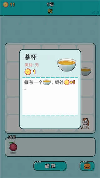 1、茶杯,每次出现一个茶杯,即可增加一个金币。
