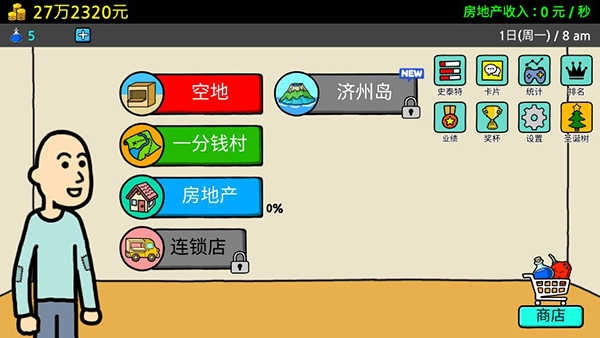 《养乞丐3》手机版是一款趣味十足的模拟经营类游戏,玩家的核心目标是在漫长的游戏进程中不断积累财富,最终实现成为富豪的梦想。游戏过程中,玩家需要通过完成各类任务与成就,逐步解锁更多实用的功能与道具。值得一提的是,游戏的成就系统设计得十分全面,既包含商业领域的成功指标,也涉及个人生活品质的提升,例如衣着的升级、居住环境的改善等方面。而完成这些不同维度的目标,都能为玩家带来额外的奖励,从而更高效地推动游戏进程向前发展。