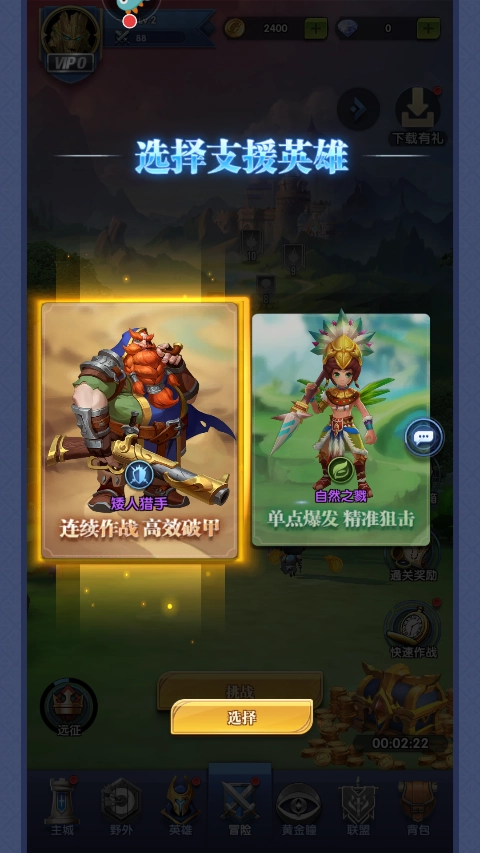 4、每通过一个小关卡,系统都会给出支援英雄的选择项,挑选合适的角色能帮你更好地继续闯关。