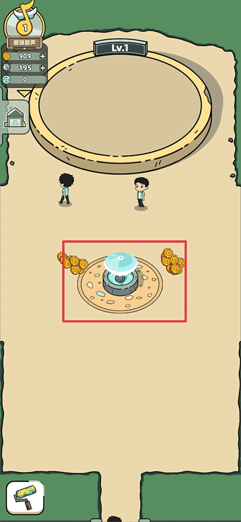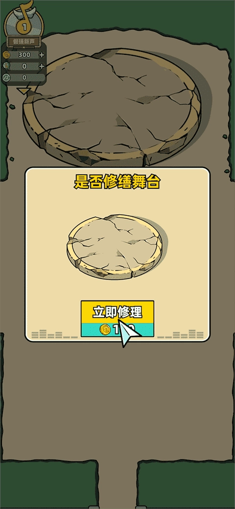 1、进入游戏后,首先要把广场打扫干净,再把舞台搭建完成。
