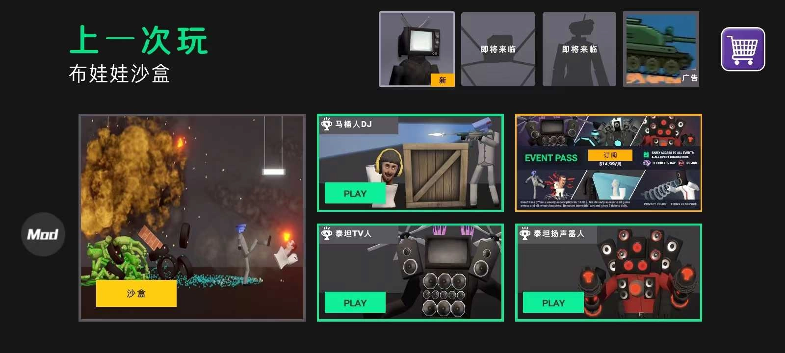 扩大可操控和试验的角色范畴,把火柴人布娃娃、僵尸等也包含进来