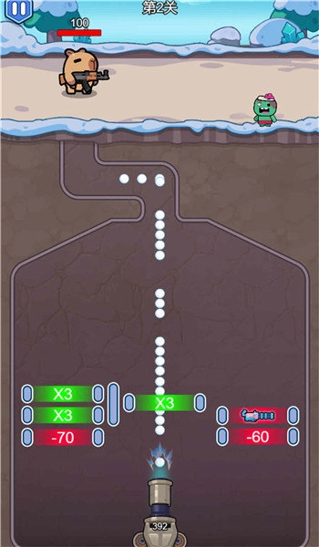 1、通过操作提升球球的数量,科学规划球球的发射轨迹,借助球球来攻击僵尸,助力卡皮吧啦向前进发。