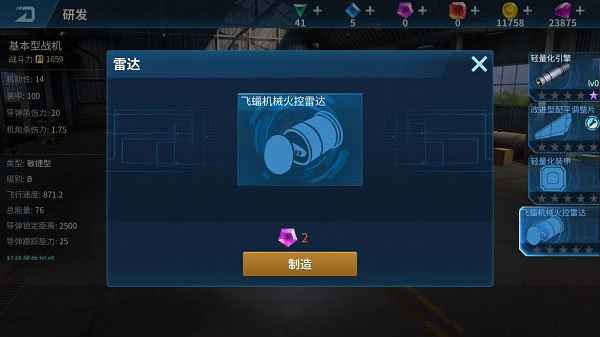 每架飞机都配备了引擎、机翼、装甲和雷达这4类关键装备,这些装备各自能为飞机带来独特的性能提升。