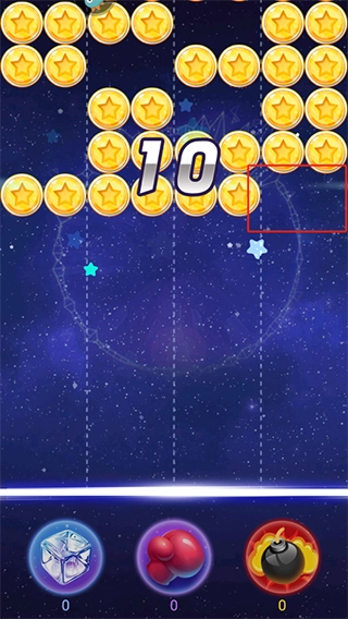 2、点击“开始游戏”按钮后,通过发射弹球来让一行行目标都填充完整,这种玩法和经典的俄罗斯方块模式很相似。