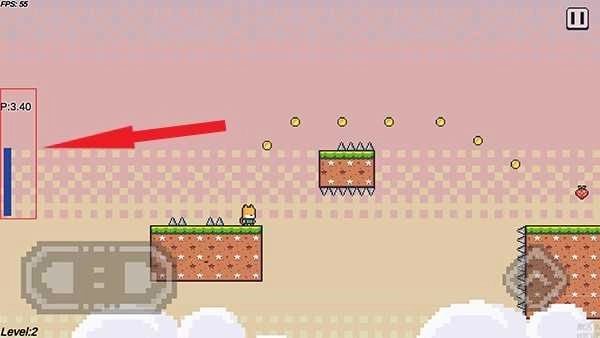 2、长按跳跃键能够激活喷气装置,使小狐狸飞至空中。飞行时,你可以调整方向收集金币,而获取草莓就能达成当前关卡的任务。