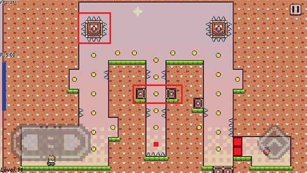 4、关卡里到处都是尖刺这类危险的障碍物,一定要小心躲开这些陷阱,不然就会闯关失败,得重新开始。