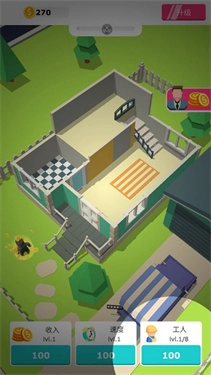1、在这款轻松有趣的装修模拟游戏里,只要打开界面,工人们就会自动开展房屋装修工作。你的目标清晰又简单:打造出一栋栋精美绝伦的住宅!