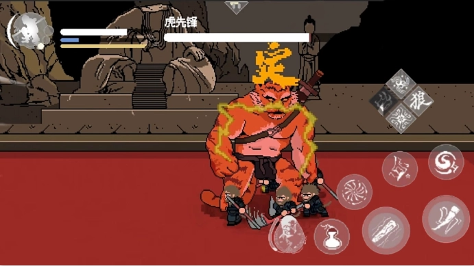 采用经典的像素风格,既唤醒了玩家对老式游戏机的怀旧情怀,也让角色与场景呈现出别具一格的视觉魅力。无论是角色形象还是场景设计,都以精心雕琢的像素艺术为基底,既保留了原作的精髓,又融入了现代审美的元素。战斗系统兼具动作性与策略性,玩家需巧妙运用悟空的七十二变、筋斗云等招牌技能,与形形色色的妖魔鬼怪展开对决。每一场战斗都是对玩家反应速度与策略思维的双重挑战。